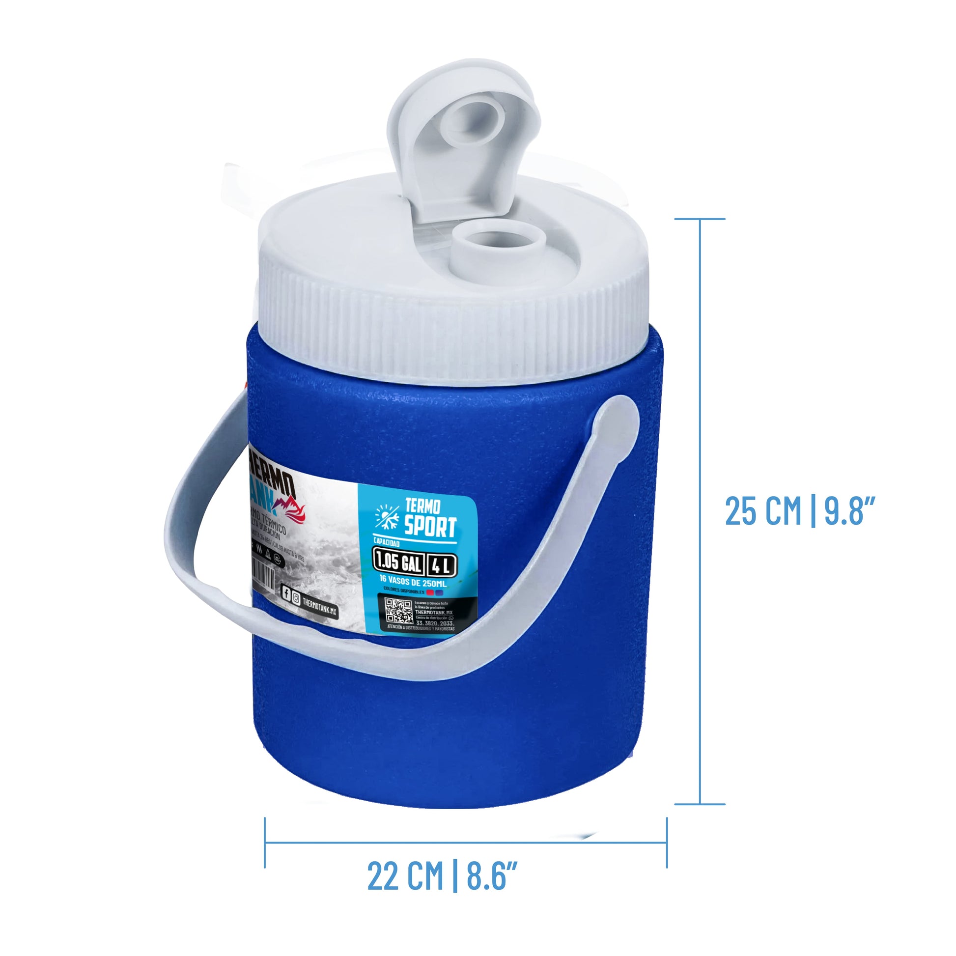 Diseñado para atletas, aventureros y equipos que se dedican a la construcción, este termo azul de galón de 4 litros es el compañero perfecto para largas jornadas de entrenamiento, partidos intensos o días de campo. Su tecnología de aislamiento superior garantiza que cada sorbo sea tan refrescante como el primero, dándote la energía para seguir adelante.